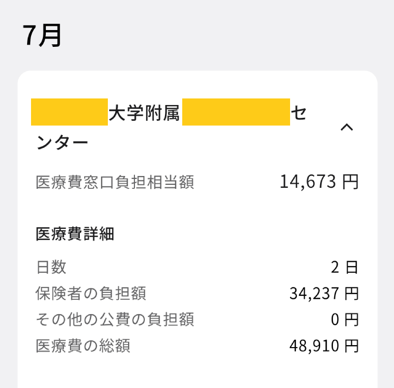これは地域の病院で紹介状を書いてもらい、大学病院を初めて受診したときの支払額です。